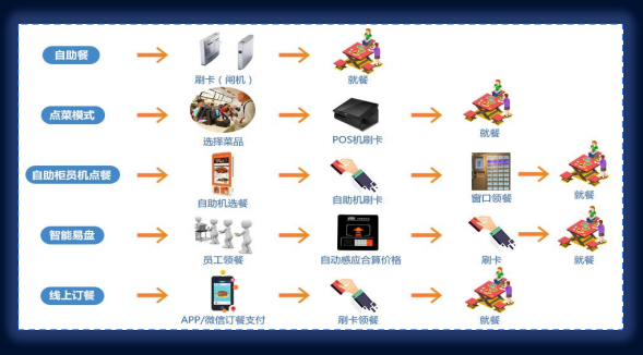 通過提供互聯網平台化的全面解決方案,徹底解決食堂所涉及的各棟訂餐(移動互聯)、 就餐、評估、採購、倉庫、成本核算等標準化、信息化問題、極大節約食堂管理及運營成本,并最大程度提升食堂員工就餐體驗。